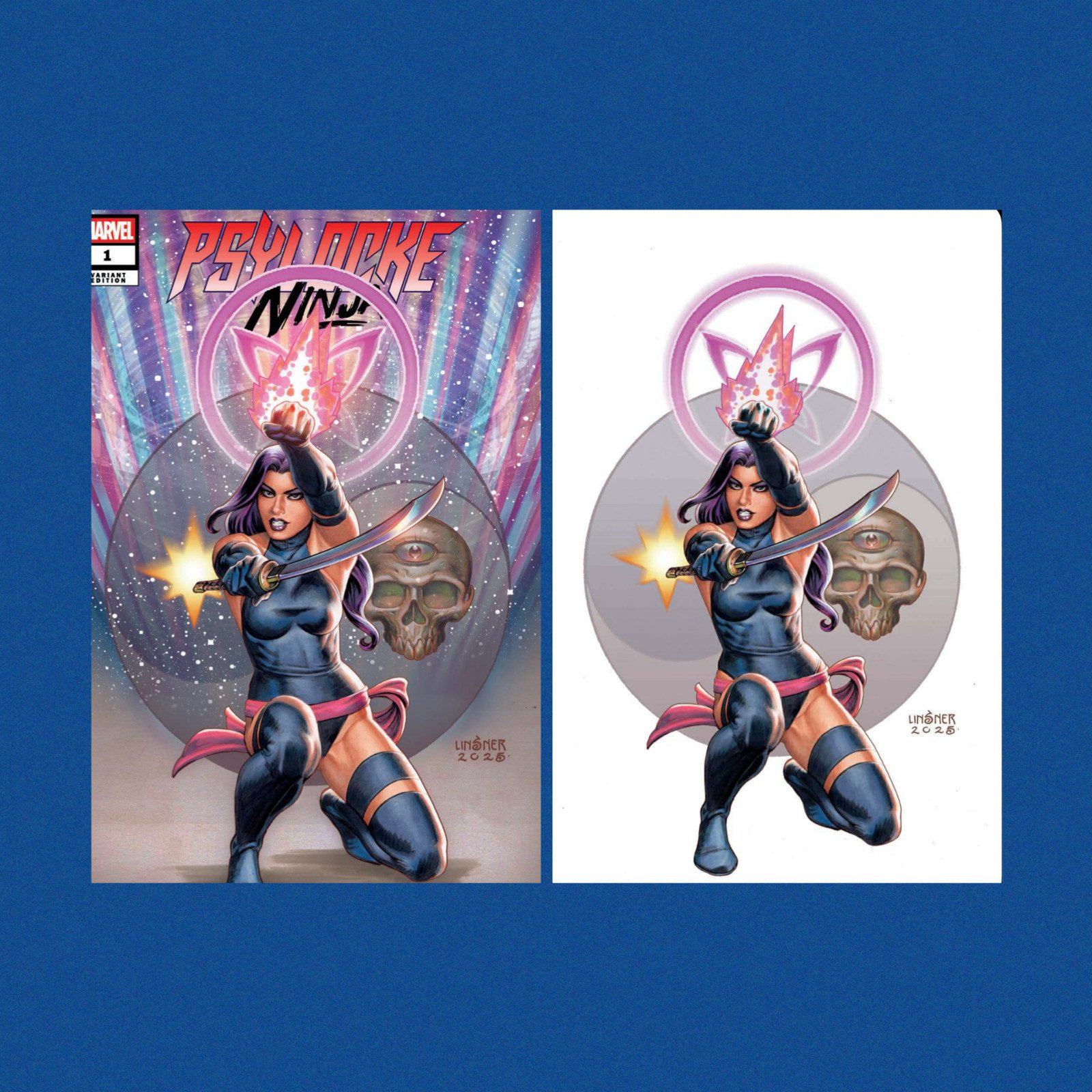 Own the ultimate Darquerwun Collectibles Exclusive set of Psylocke: Ninja #1, featuring both the Trade Dress Variant and the Virgin Variant with cover art by Joseph Michael Linsner (2025). This exclusive bundle includes: